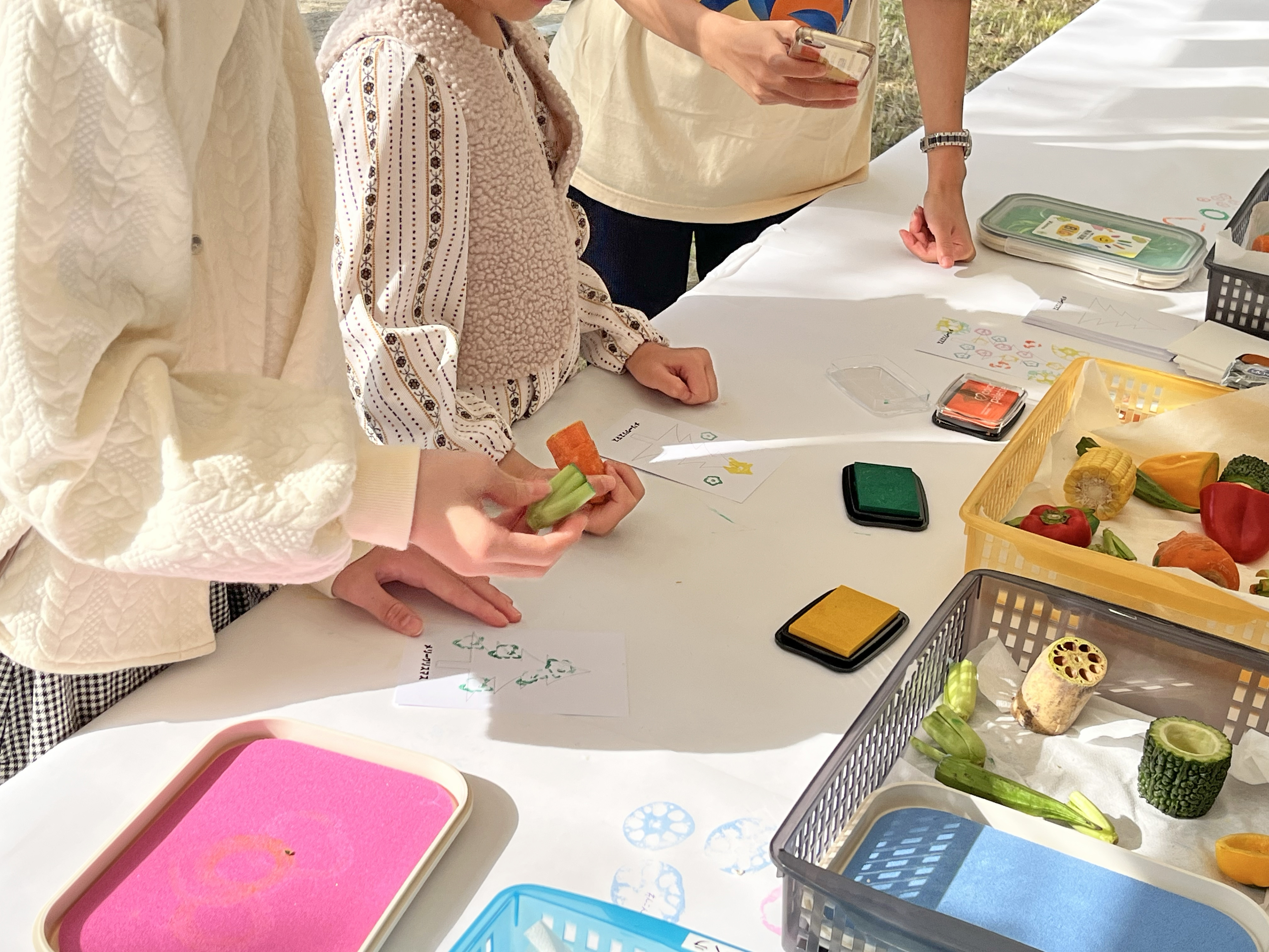 昨年度、大人気だった野菜スタンプはブースを拡大してクリスマス&年賀状にも使えるポストカード作りにバージョンアップ!