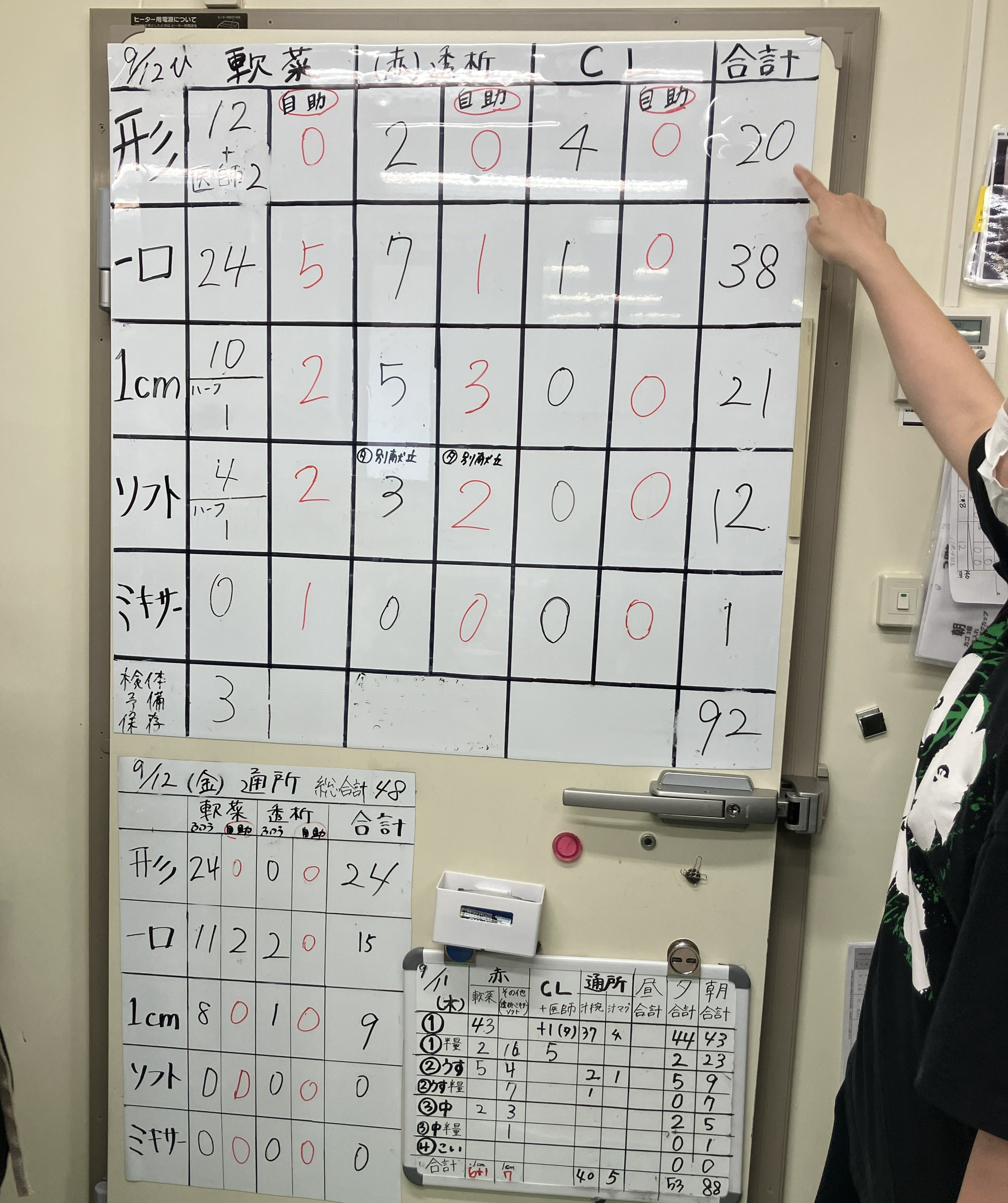 また、作業手順はすべて視覚化することも徹底しました。ご利用者の状態によって、ご飯は米飯、二度炊き、全粥、とろみ粥、ミキサー粥の5種類、汁物はトロミ濃度が3種類、食器についても普通食器や自助食器に分かれていることから、非常に煩雑な作業が要められます。そこで取り入れたのが、マグネット仕様のホワイトボードです。クックデリさんからのアドバイスもあり、毎食の各組み合わせパターンをホワイトボードに書き出すようにすることにより、パートさんもこれを見ながら自ら食器を用意できるようになりました。