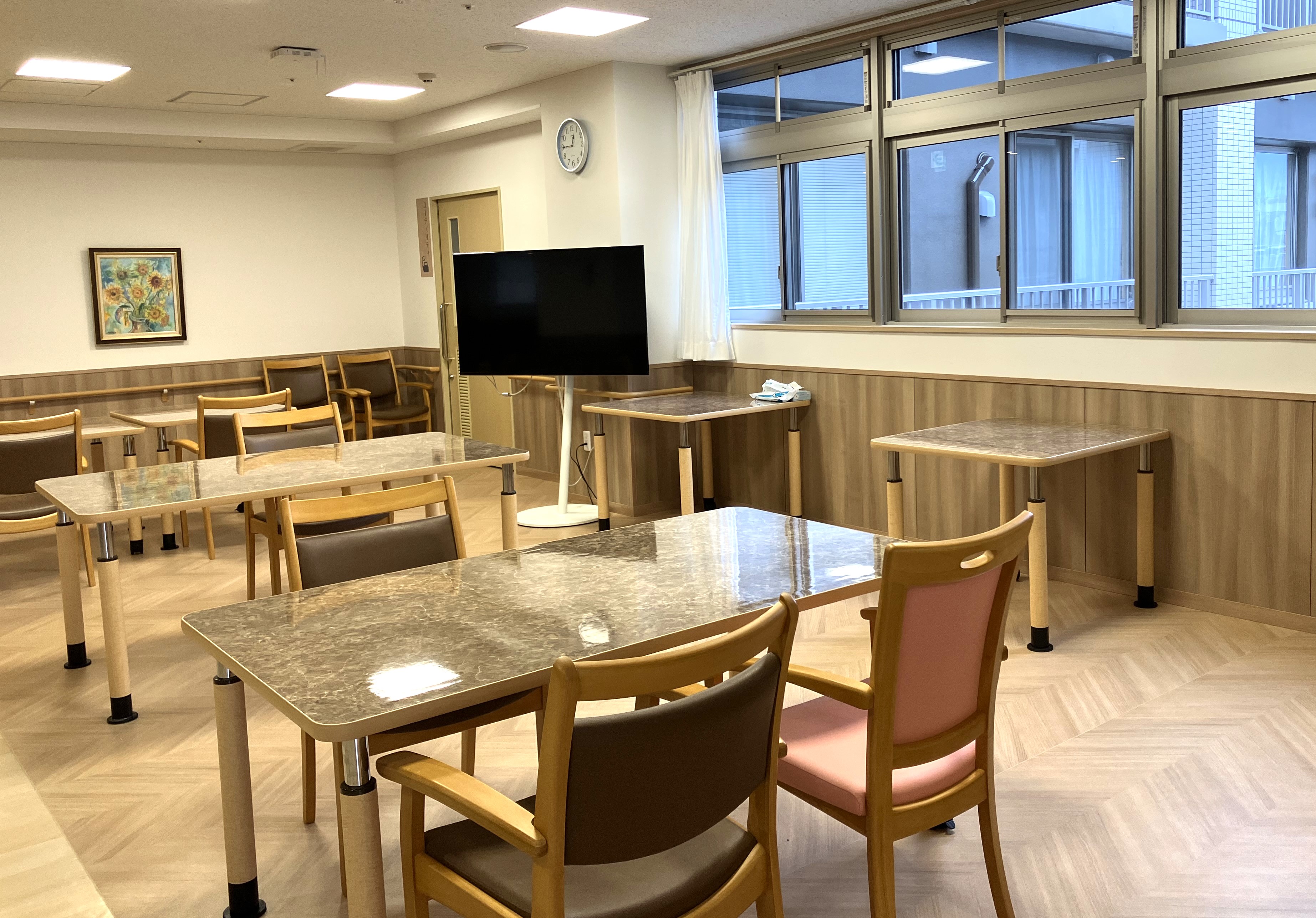 5階建ての施設は介護度によってフロアを分け、転倒事故予防効果の高い床材を導入したり壁紙の模様を変えてご自身の居室がわかりやすいようにする等、細かな配慮をして安全な生活をしていただいており、お食事とお風呂も楽しんでいただけるよう整備しております。