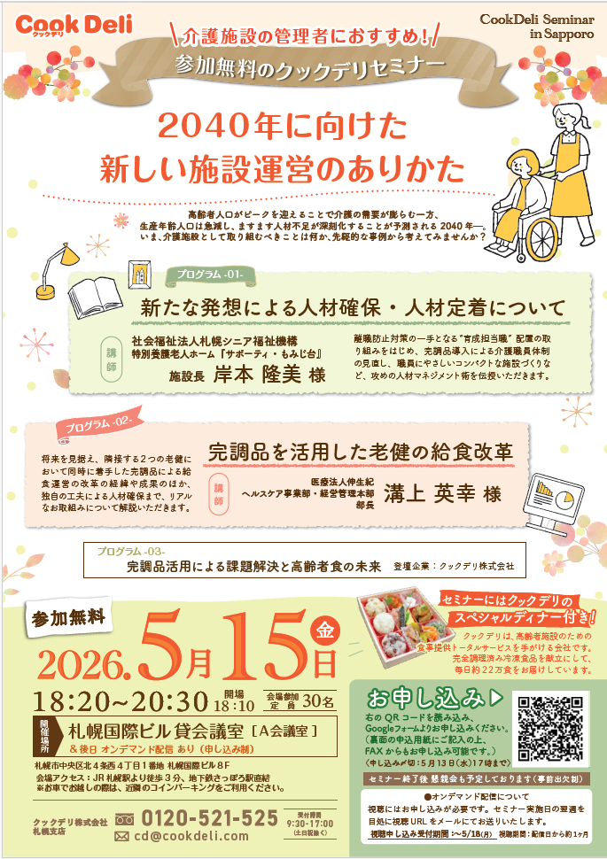 講師には、社会福祉法人札幌シニア福祉機構 特別養護老人ホーム『サポーティ・もみじ台』施設長の岸本隆美様、