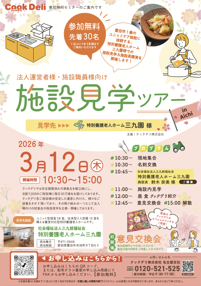 参加費は無料、当日はクックデリの完全調理済み冷凍食品スペシャルランチ付き!