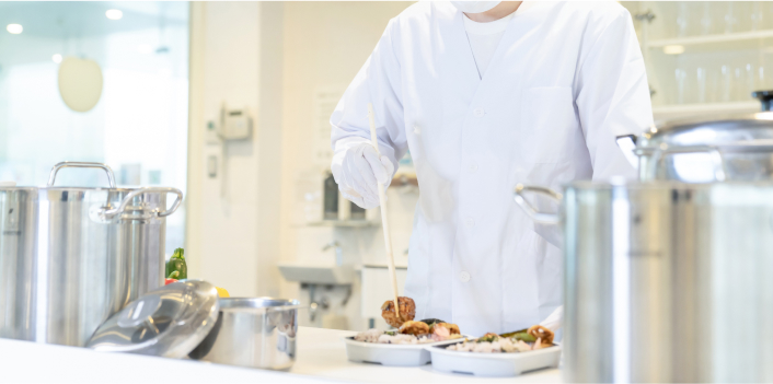 調理済み食材と自社調理を組み合わせるハイブリッド給食で、コストを抑えながら人員はスリム化。専門スタッフ不要で、手軽に美味しいお食事を提供できます。調理済み食材の活用により、厨房で行う作業は「再加熱・盛付け・配膳・洗浄」が中心となります。仕込みやゼロからの調理工程が大幅に短縮されるため、必要な人員配置をスリム化できます。 また、複雑な調理スキルや経験を持つ専門の調理師が必ずしも多数必要ではなくなり、パート・アルバイトスタッフでも対応可能な業務が増え、採用のハードルが下がります。